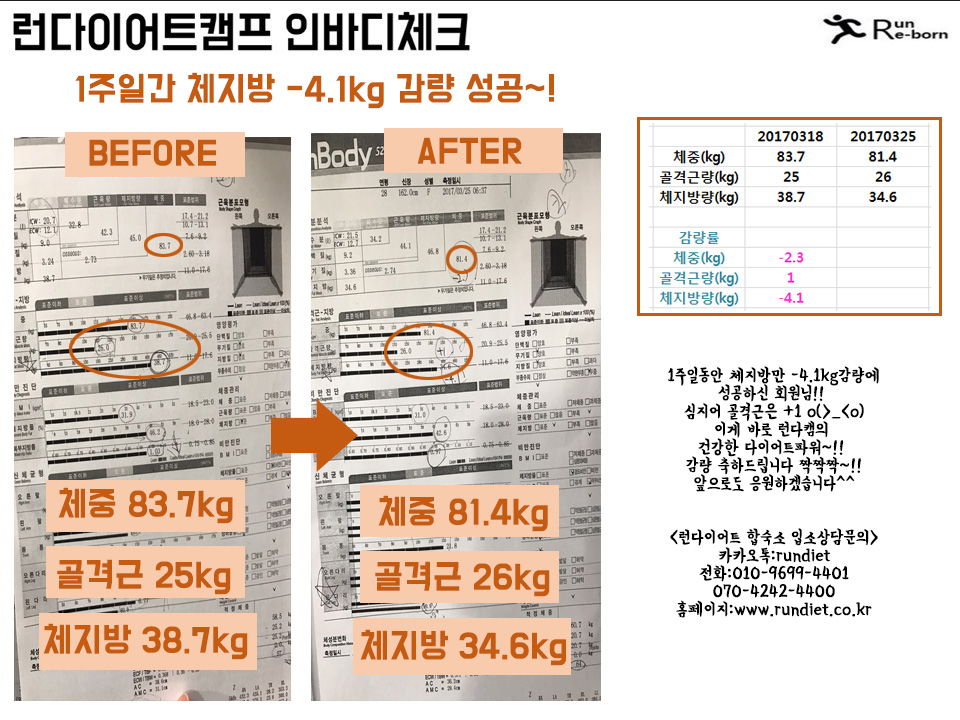 ¼¼¹øÂ° Àιٵð üũ°á°ú´Â ÀÔ¼Ò 5Àϸ¸¿¡ -4.2kg °¨·®¿¡ ¼º°øÇϽŠȸ¿ø´Ô!! ÀÔ¼Ò Ã¹ÁÖ¿¡´Â ´Ù¸¥ÁÖº¸´Ù °¨·®·üÀÌ ´õ¿í ÁÁ´ä´Ï´Ù~ ÀÏ´Ü ¹Û¿¡¼ µå½Ã´ø ½Ä´Ü°ú Ä·ÇÁ¾È¿¡¼ µå½Ã´Â ½Ä´Ü¿¡ ¸¹Àº Â÷À̰¡ Àֱ⠶§¹®ÀÌÁÒ!!¤¾¤¾ ÀÌ·¸°Ô ÁÁÀº °á°ú º¸¿©ÁֽŠȸ¿ø´Ô~ ¾ÕÀ¸·Î°¡ ±â´ëµË´Ï´Ù>_<