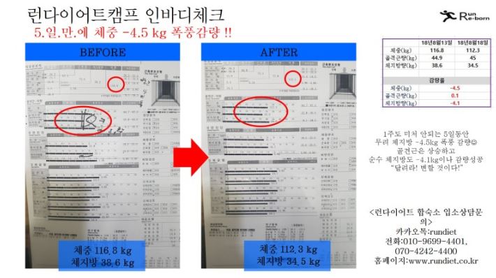 üÁß 116.8->112.3 -4.5kg°¨·® °ñ°Ý±Ù·® 44.9->45 +0.1 üÁö¹æ 38.6->34.5 -4.1kg°¨·®