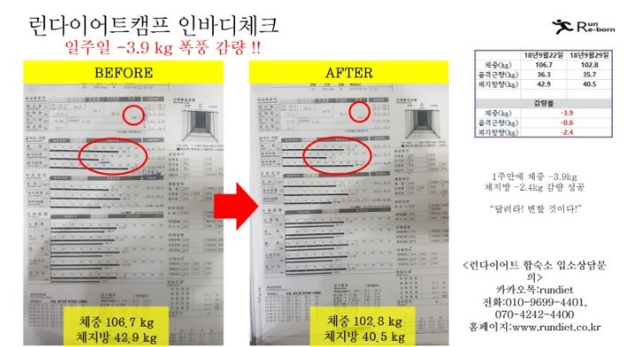 ÀÏÁÖÀÏ µ¿¾È ¿ì¸® ·±·±·± ÇØÁֽŠȸ¿ø´Ô !üÁß 112.6kg > 107.9kg, -4.7kg °¨·®°ñ°Ý±Ù·® 41.4kg > 40.6, -0.8±Ù¼Õ½ÇüÁö¹æ 40.2 > 37.1, -3.1kg °¨·®ÀÏÁÖÀÏÀ̶ó´Â ªÀº ½Ã°£µ¿¾ÈüÁß 4.7kg¿¡¾à°£ÀÇ ±Ù¼Õ½ÇÀÌ ÀÖ¾úÁö¸¸Ã¼Áö¹æ 3.1 ÆøÇ³°¨·®·üÀ» º¸¿©Áּ̾î¿ä ¢½ÇÑÁÖ°£ ³Ê¹« ¼ö°í¸¹À¸¼Ì½À´Ï´Ù !µÎ¹øÂ° ·± ´ÙÀÌ¾îÆ®Ä·ÇÁ ü¼ººÐ ÃøÁ¤ °á°ú ÀÔ´Ï´Ù