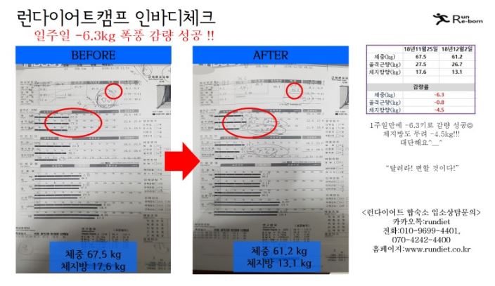 ¿ì¸® µÎ¹øÂ° ȸ¿ø´ÔÀº ÀÏÁÖÀϵ¿¾È -6.3kg ÆøÇ³°¨·®!! üÁß 67.5 > 61.2 °ñ°Ý±Ù 27.5 > 26.7 üÁö¹æ 17.6 > 13.1 ¿Í! ¾öû³ °¨·®·üÀÔ´Ï´Ù. ¹«·Á -6.3kgÀ̳ª °¨·®À» ÇØÁּ̾î¿ä!! °ñ°Ý±Ù·®Àº -0.8kg Á¤µµ ¼Õ½ÇÀÌ ÀÖ¾úÁö¸¸, üÁö¹æ -4.5kg °¨·®±îÁö ¿Ïº®ÇØ¿ä~!