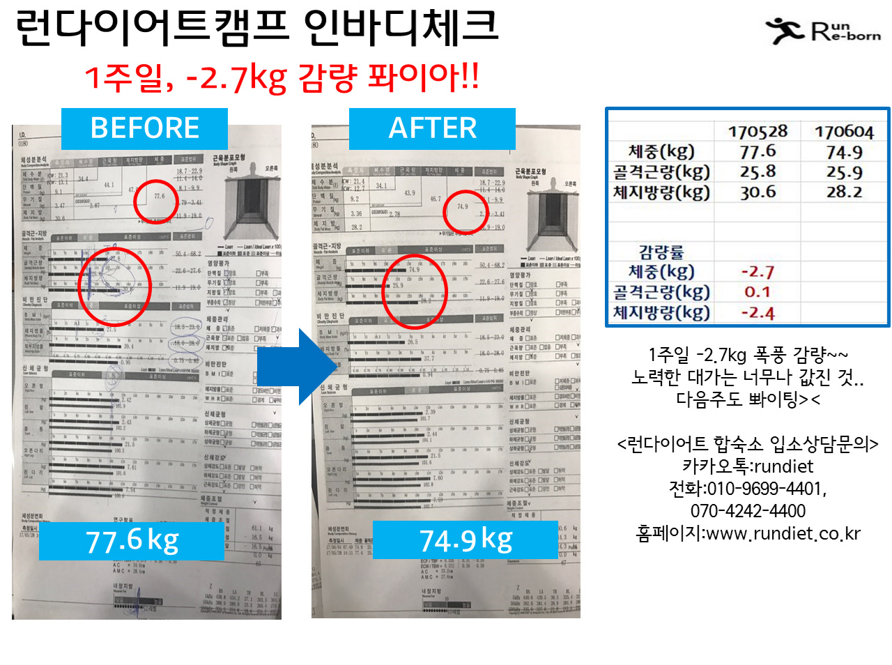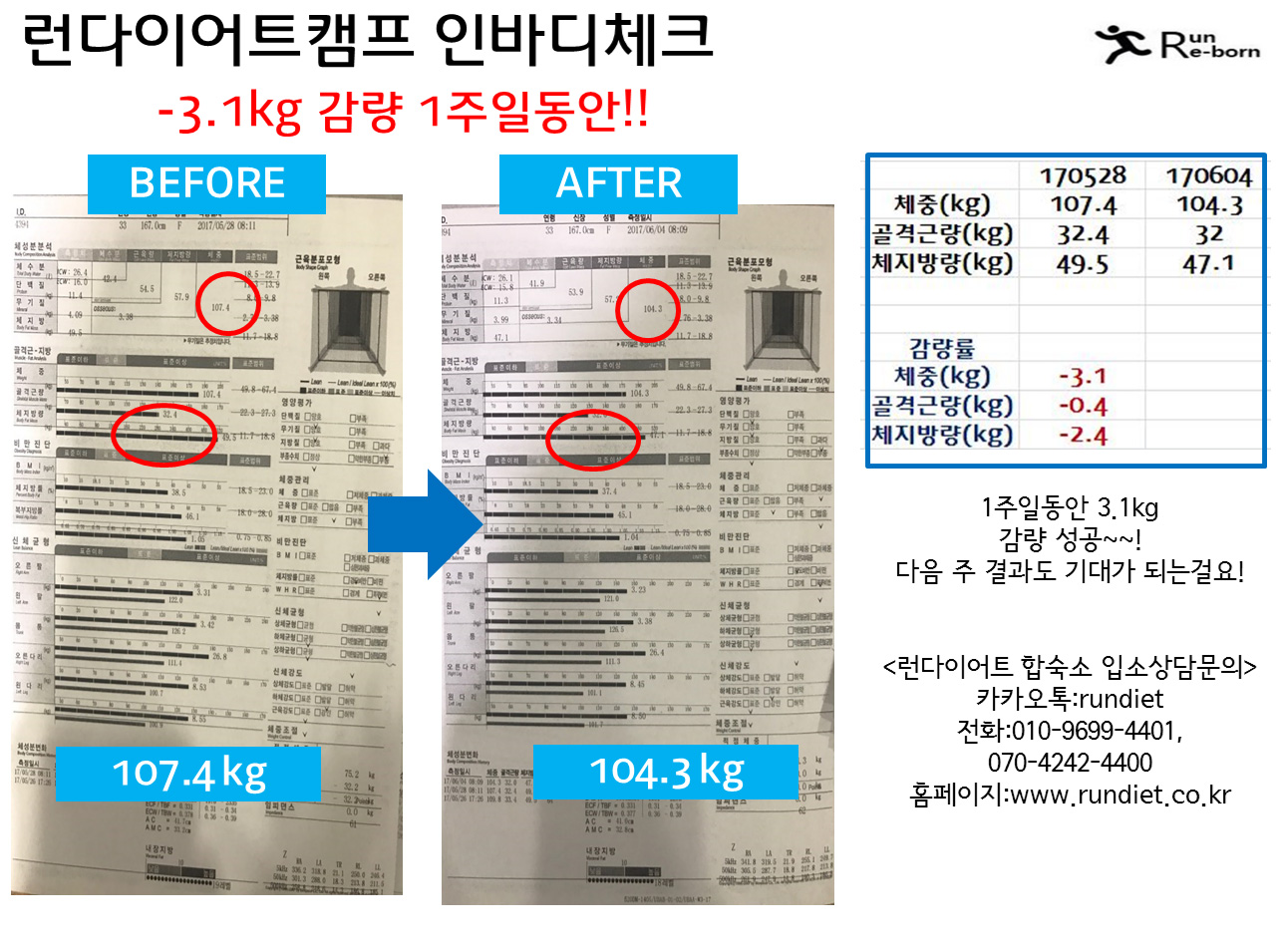 ÇÕ¼÷´ÙÀÌ¾îÆ® ·±´ÙÀÌ¾îÆ®Ä·ÇÁ µÎ¹øÂ° ȸ¿ø´ÔÀÇ Ã¼¼ººÐÃøÁ¤ °á°úÀÔ´Ï´Ù 1ÁÖÀϵ¿¾È -3.1kg °¨·®¿¡ ¼º°ø!