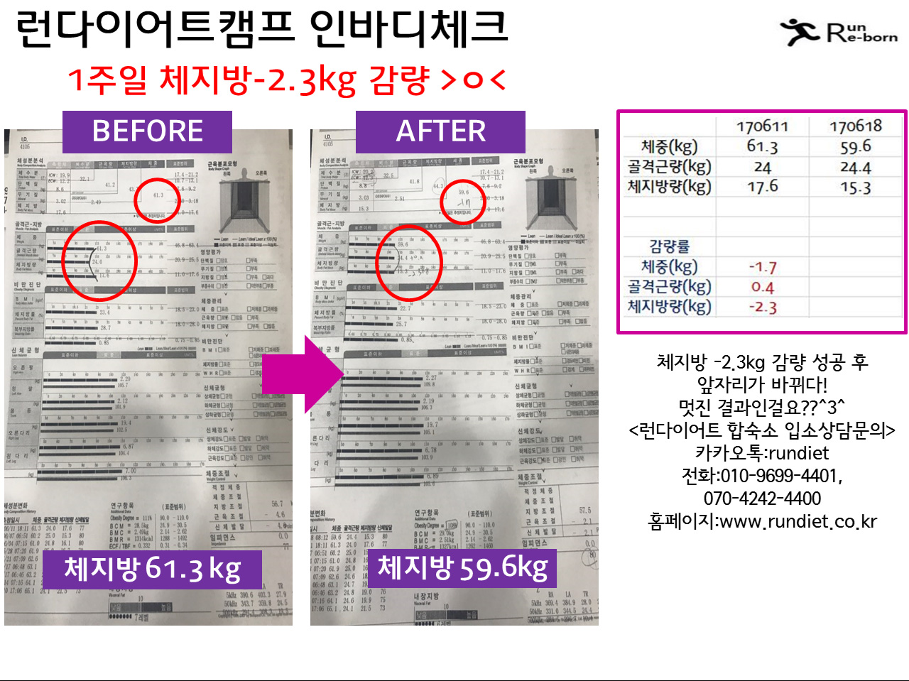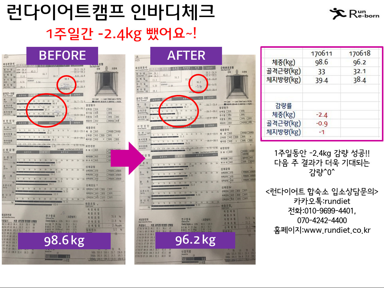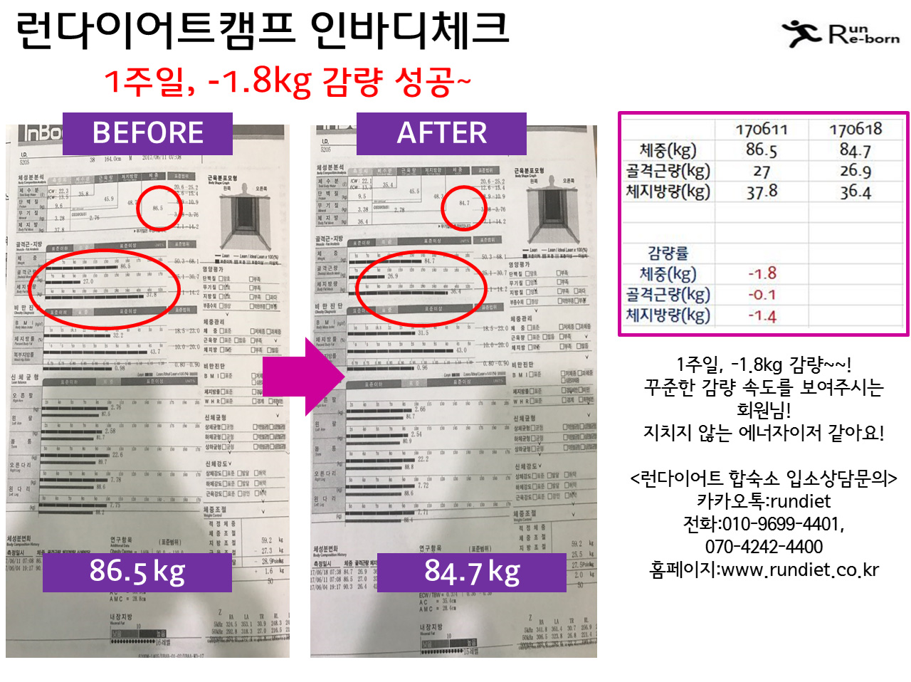 µÎ¹øÂ° ȸ¿ø´ÔÀÇ Ã¼¼ººÐÃøÁ¤ °á°úÀÔ´Ï´Ù~! 1ÁÖÀϵ¿¾È -1.8kg °¨·® ÇϽŠȸ¿ø´Ô! ÀÔ¼Ò ±â°£ÀÌ ¾î´Àµ¡ ÇÑ´ÞÀÌ Áö³ª¼Å¼ üÁß º¯È¿¡ ±ÇűⰡ ¿À½Ç ¹ýµµ Çѵ¥ ²ÙÁØÈ÷ ¸ÅÁÖ 2Ű·Î °¡±îÀÌ °¨·® ÁßÀ̽ʴϴÙ!!