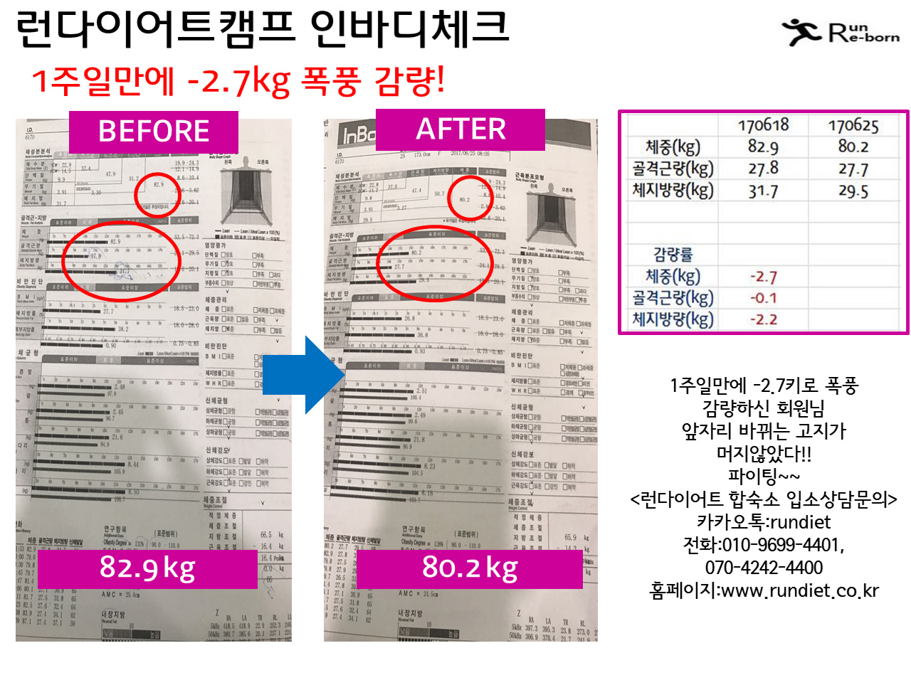 ¼¼¹øÂ° ȸ¿ø´ÔÀÇ Ã¼¼ººÐ üũ °á°úÀÔ´Ï´Ù!! 1ÁÖÀϸ¸¿¡ -2.7kg ÆøÇ³ °¨·®¿¡ ¼º°ø!! ÈÄ ..¾Æ¸¶ 28ÀÏ Áö±Ý ÇöÀç ȸ¿ø´ÔÀº 70۷δë·Î ÀÌ¹Ì ÁøÀÔÇϼÌÀ» °Í °°¾Æ¿ä~~¤¾¤¾ ´ÙÀ½ÁÖ Àιٵð °á°ú°¡ ±â´ë°¡ µË´Ï´Ù