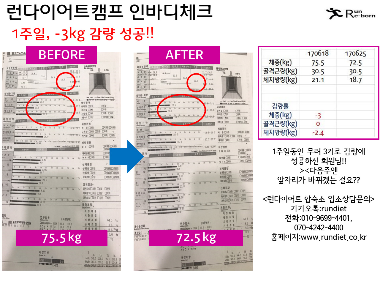 ù¹øÂ° ȸ¿ø´ÔÀÇ Àιٵðüũ°á°úÀÔ´Ï´Ù~~! 1ÁÖÀϸ¸¿¡ ¹«·Á üÁö¹æÀ» 3.1kg³ª °¨¼ÒÇϽŠȸ¿ø´Ô>< °Å±â¿¡ °ñ°Ý±ÙÀº 2.4°¡ »ó½Â... ¾î¸Ó³ª ºñ°áÀÌ ¹¹¿¹¿ä~!!