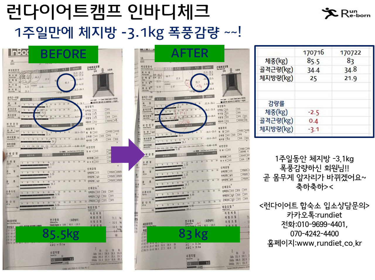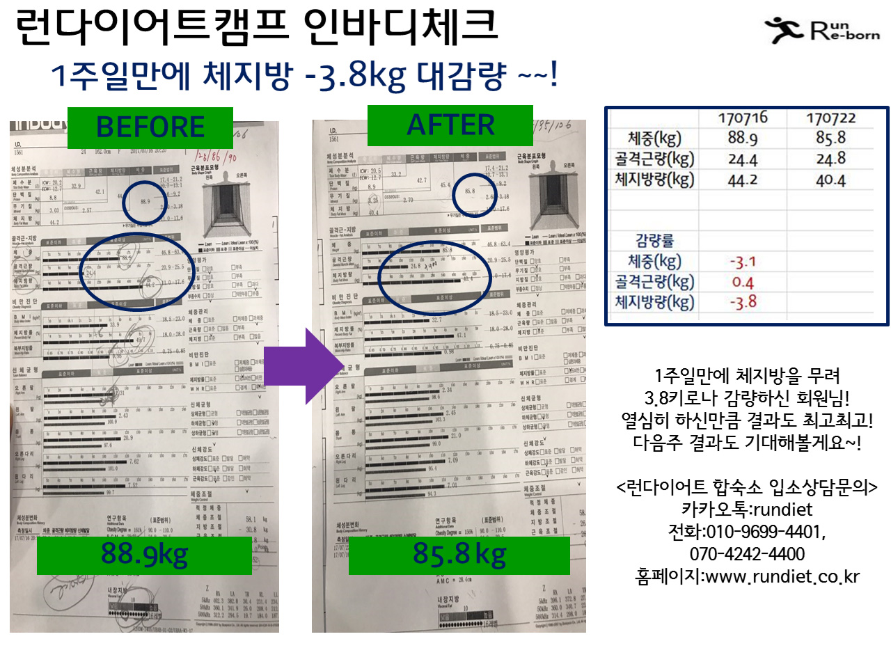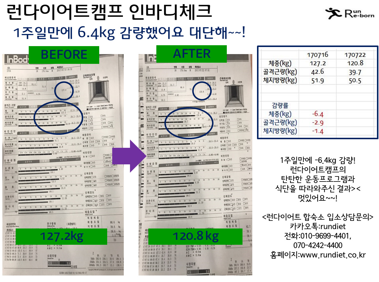¼¼¹øÂ° ÇÕ¼÷´ÙÀÌ¾îÆ® ·±´ÙÀÌ¾îÆ®Ä·ÇÁ ü¼ººÐ ÃøÁ¤ °á°úÀÔ´Ï´Ù! ¾î¸Ó³ª ¼¼»ó¿¡ 1ÁÖÀϵ¿¾È üÁß 6.4kg °¨·® µµ´ëü ¹«¾ó ÇϽŰſ¹¿ä~!¤»¤»¤» ·±´ÙÀÌ¾îÆ®Ä·ÇÁÀÇ ¿îµ¿°ú ½Ä´Ü°ü¸® ÇÁ·Î±×·¥À» ¿½ÉÈ÷ µû¶ó¿ÍÁֽаá°ú>< ¹Ú¼ö ¦¦¦! ´ÙÀ½ÁÖµµ ºüÀÌÆÃ ÀÔ´Ï´ç~