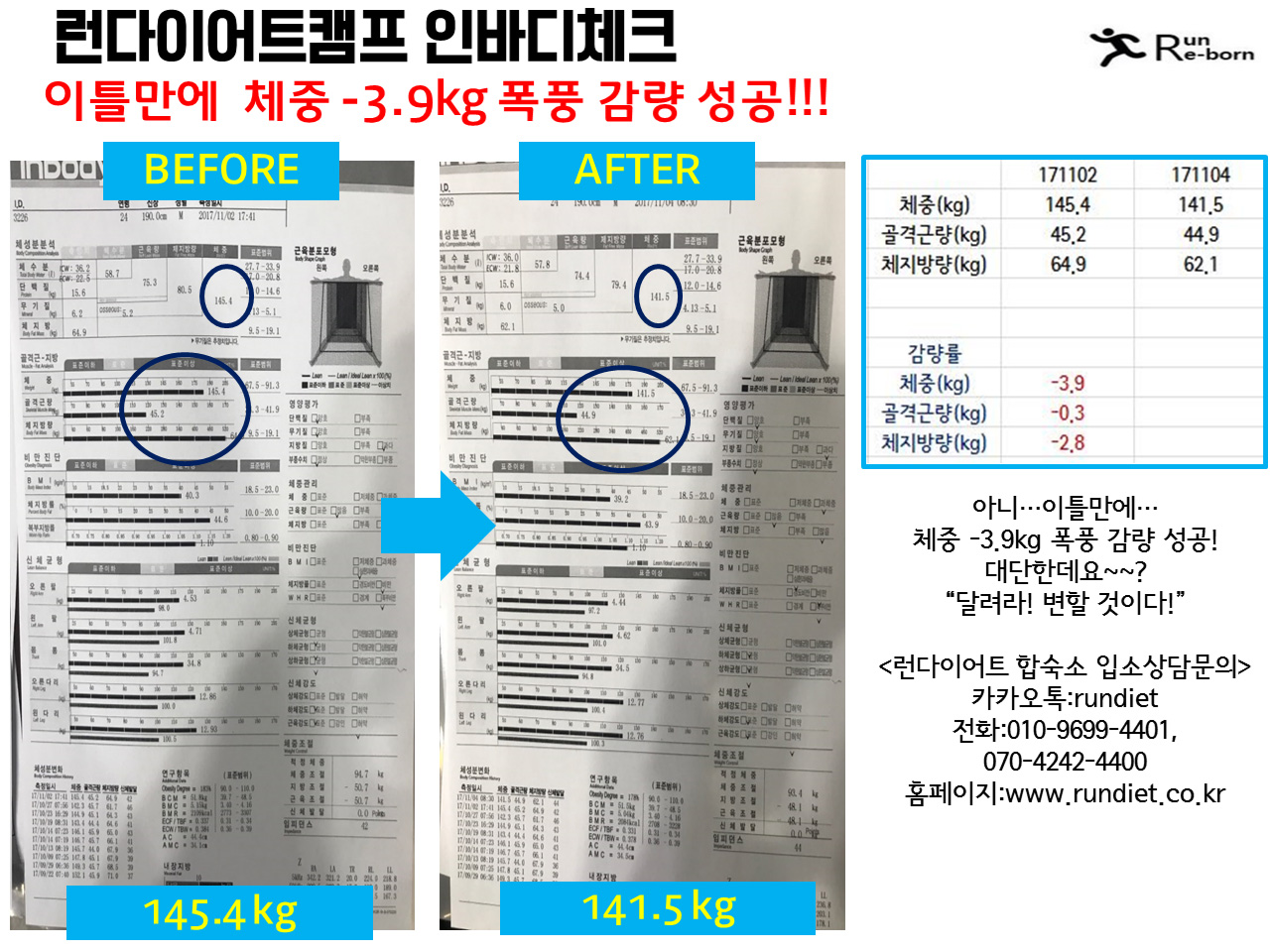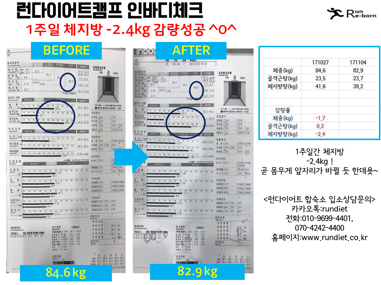 µÎ¹øÂ° °á°úÀÔ´Ï´Ù. 1ÁÖÀϰ£ üÁö¹æ -2.4kg °¨·® ¿¡ ¼º°øÇϽŠȸ¿ø´Ô °ñ°Ý±ÙÀº ¶Ç 0.2kg »ó½Â Çϼ̳׿ë! üÁö¹æ °¨·®¿¡ °Å±â¿¡ °ñ°Ý±Ù »ó½ÂÀ¸·Î ±âÃÊ´ë»ç·® up ¿ä¿ä´Â Á¡Á¡ ¸Ö¾îÁö°í~~³¯¾ÀÇÑ ¸öÀº Á¡Á¡ °¡±î¿öÁö´Â Áß :)