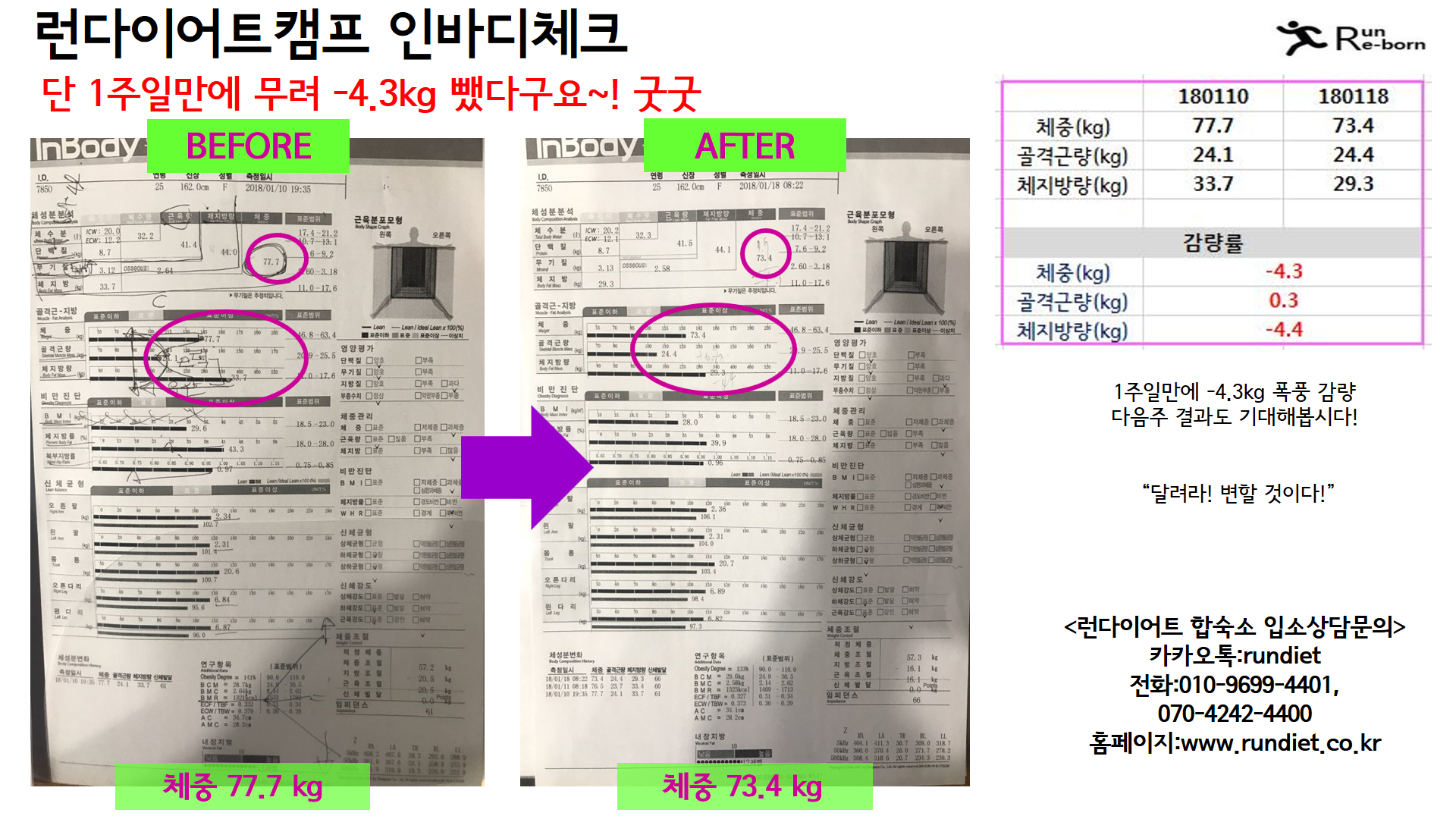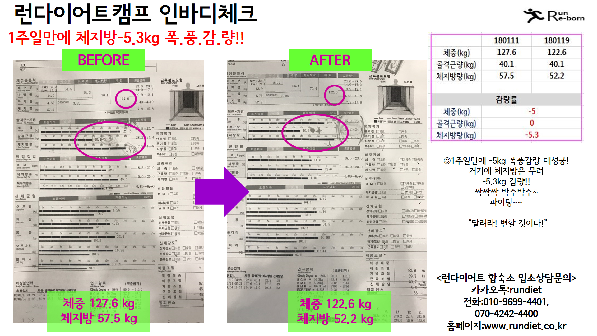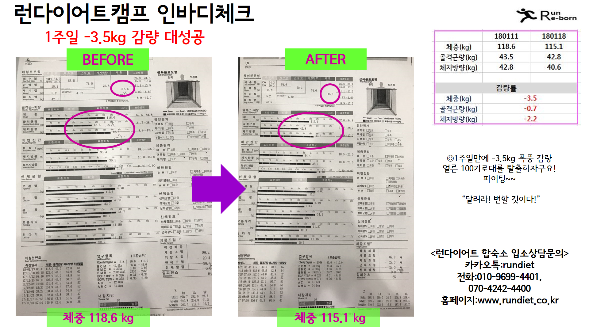 1¿ù ¼Â°ÁÖ ·±´ÙÀÌ¾îÆ®ÇÕ¼÷¼Ò ü¼ººÐ ÃøÁ¤ °á°ú ´Ùµé ¾î¶»°Ô º¸¼Ì³ª¿ä? 1ÁÖÀϸ¸¿¡ 3~5Ű·Î ÀÌ·¸°Ô °¨·®ÇÏ´Â °Ô Çö½ÇÀûÀ¸·Î °¡´ÉÇѰ¡ ¶ó´Â »ý°¢ÀÌ µå½ÃÁö¿ä??! ·±´ÙÀÌ¾îÆ®Ä·ÇÁ¿¡¼´Â °¡´ÉÇÕ´Ï´Ù!