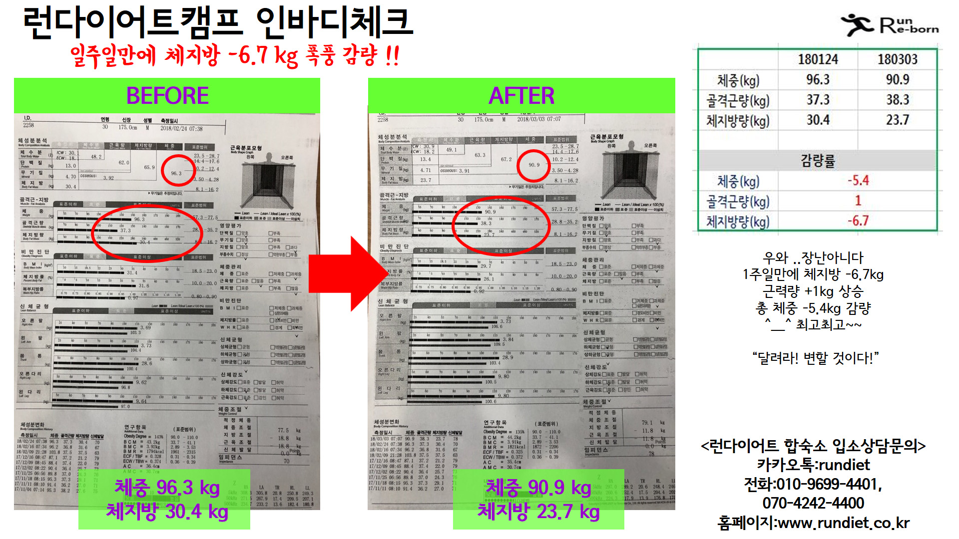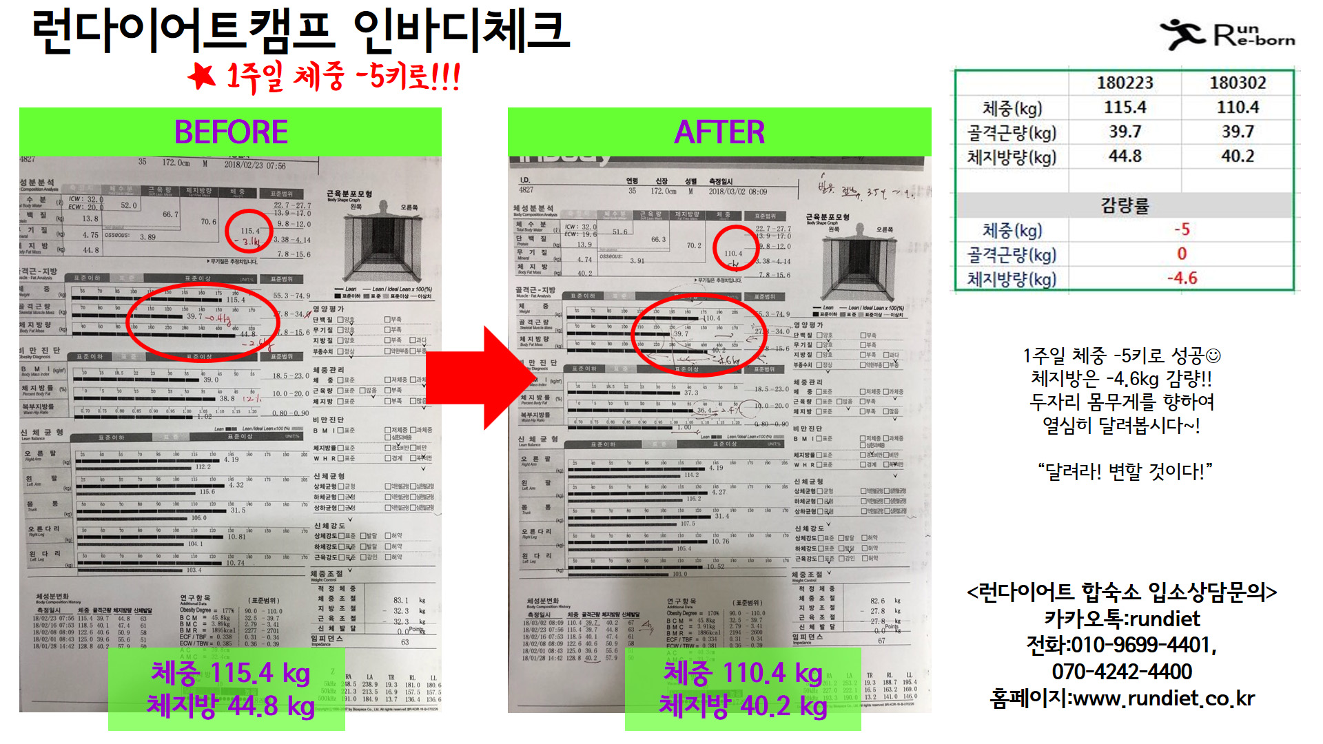 1ÁÖÀÏ µ¿¾È üÁß -5kg °¨·® ¼º°øÇϽŠȸ¿ø´Ô>_<¢¾ °ÅÀÇ Ã¼Áö¹æÀ¸·Î¸¸ °¨·®¿¡ ¼º°ø ±Ù¼Õ½Ç ¾øÀÌ Ã¼Áö¹æÀ¸·Î -4.6kg °¨·® Çϼ̴ä´Ï´Ù!! üÁß 115.4 kg¿¡¼ üÁß 110.4kg ·Î °¨·®! üÁö¹æ 44.8kg ¿¡¼ üÁö¹æ 40.2kg·Î üÁö¹æ °¨¼Ò:)